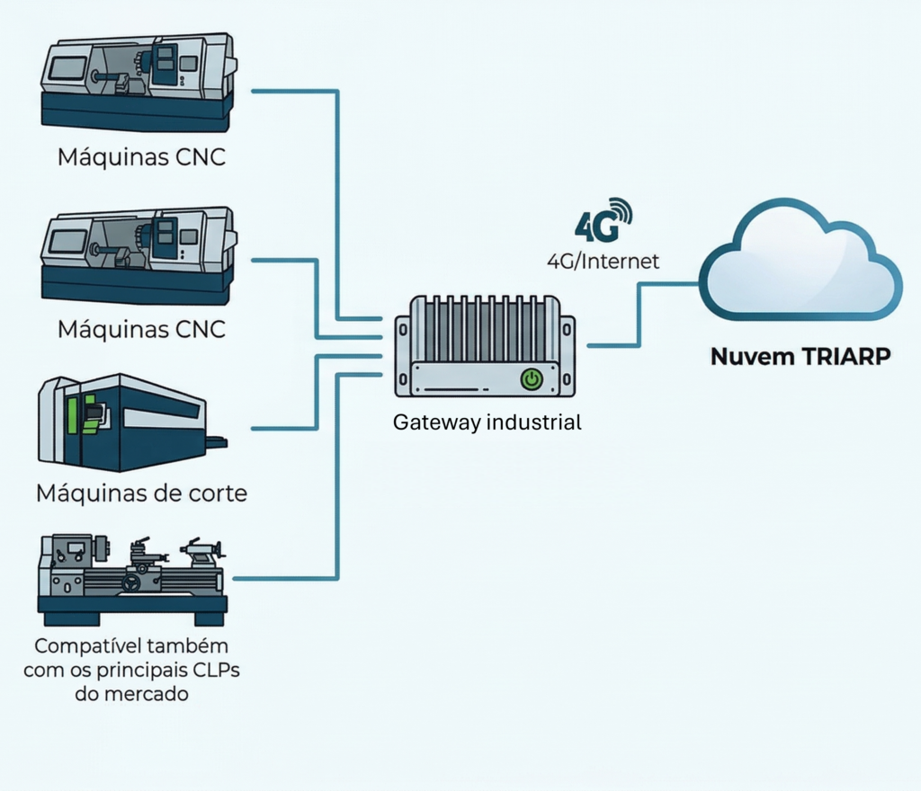 A TRIARP integra sensores, máquinas e sistemas de gestão de forma transparente e segura, permitindo que as informações circulem entre o chão de fábrica e a nuvem — sem travas, sem complicações.